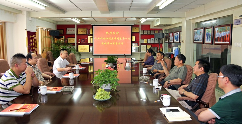 7月11日下午,六安市政协副主席阚家平一行来到安徽华力建设集团调研指导工作。华力控股董事长常前仓,华力控股副董事长、建筑板块董事长王坤,华力建设常务副总经理赵学军、财务总监贾中财等陪同调研。