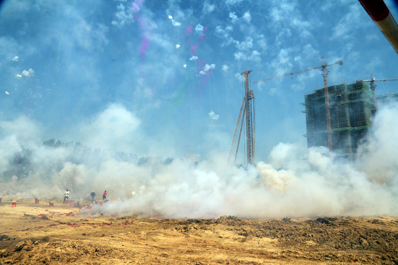 726上午,有华力承建的合肥城建琥珀名郡香榭里B1#~B8#、商业S5#~S12#及地库项目工程,举行了十分务实的开工活动。肥东县建筑质量监督站副站长关潮海,合肥城建副总经理王庆生,合肥市建设工程监理公司温耀志,安徽省建筑设计院吴邦照,安徽省城建设计研究总院赵谷建,华力建设总经理王亮、常务副总经赵学军等有关负责人参加了活动。