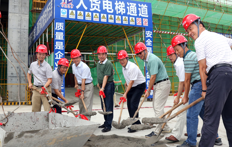 8月8日上午,由安徽华力建设集团有限公司承建的安徽建筑大学南校区实验综合楼工程举行节俭而又隆重的封顶仪式,安徽建筑大学校长方潜生、副校长宋箭,安徽华力建设集团有限公司董事长王坤,安徽建筑大学设计研究院院长章琳,安徽建筑大学勘测设计研究院院长李永杨,安徽建科建设监理有限公司总监杨世文,建设公司总工程师吴银国等,共同挥锹为封顶送上最后一筐浇筑混凝土。随后,掌声和着鞭炮声齐鸣,礼花在空中绽放,映照着高高耸立的实验综合楼主体大楼。