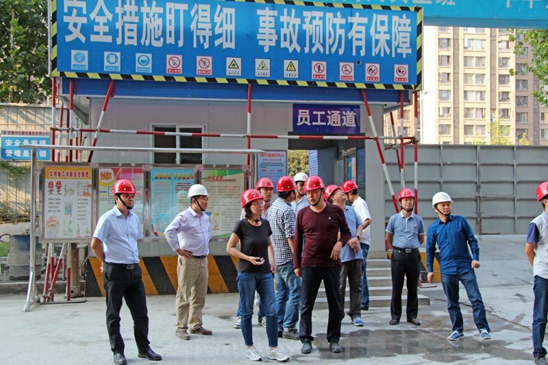 王亮总经理(左)陪同赵静副秘书长(中)在安建大工地检查