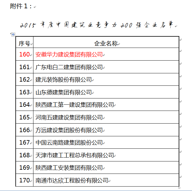 1012日,中国建筑业协会公布了《关于公布2015年度中国建筑业双200强企业评价结果的通知》,华力建设在“2015年度中国建筑业竞争力200强企业”中,榜上有名,位列160位。此前,他们已经连续六年获“中国建筑业成长性百强企业”,此次“晋升”是华力人在新常态下,不断进取,不断进步的良好体现,华力的实力得到了广泛的认同。