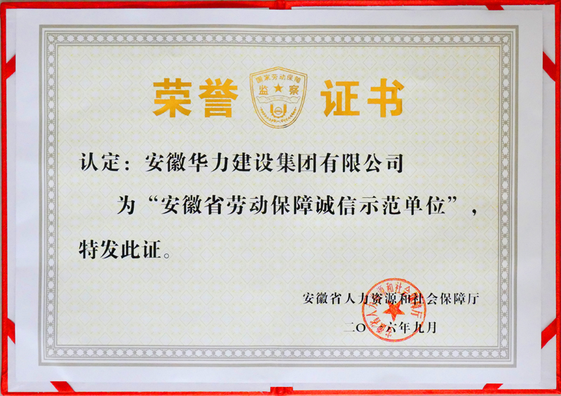 日前,安徽省人力资源和社会保障厅发文(皖人社秘〔2016〕277号),安徽华力建设集团有限公司被认定为“2016年安徽省劳动保障诚信示范单位”。