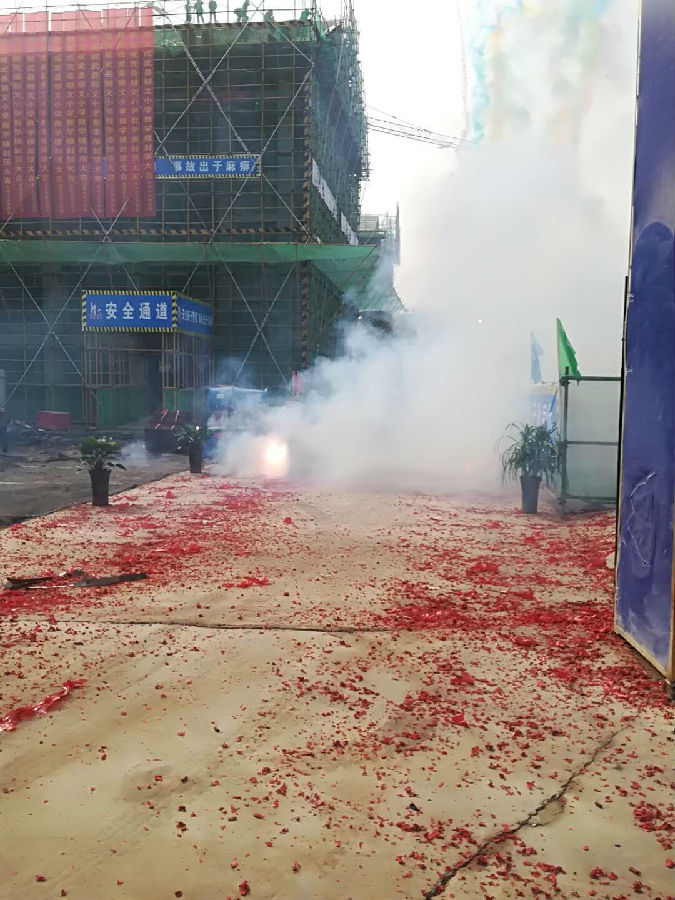 封顶仪式简约且不失隆重。上午10点16分,华力建设常务副总经理、成武分公司总经理赵学军宣布:两所小学正式封顶,鸣炮!鞭炮齐鸣,见证了这一美好时刻。