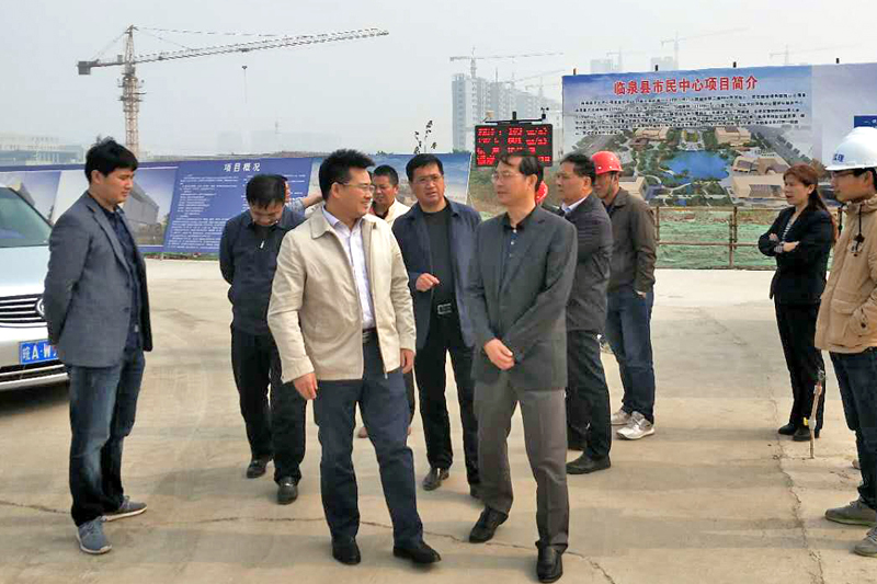 2017年11月3日,安徽省发展改革委党组成员、副主任万士其,投资处处长李向阳、重点办主任汪振宇,投资处主任科员马宁、代浩,阜阳市发展改革委党组成员、副主任高峰,重点办张文雪等一行,在临泉县县长梁永勤、常务副县长刘峰等陪同下,到华力承建的临泉县市民中心施工现场调研指导。