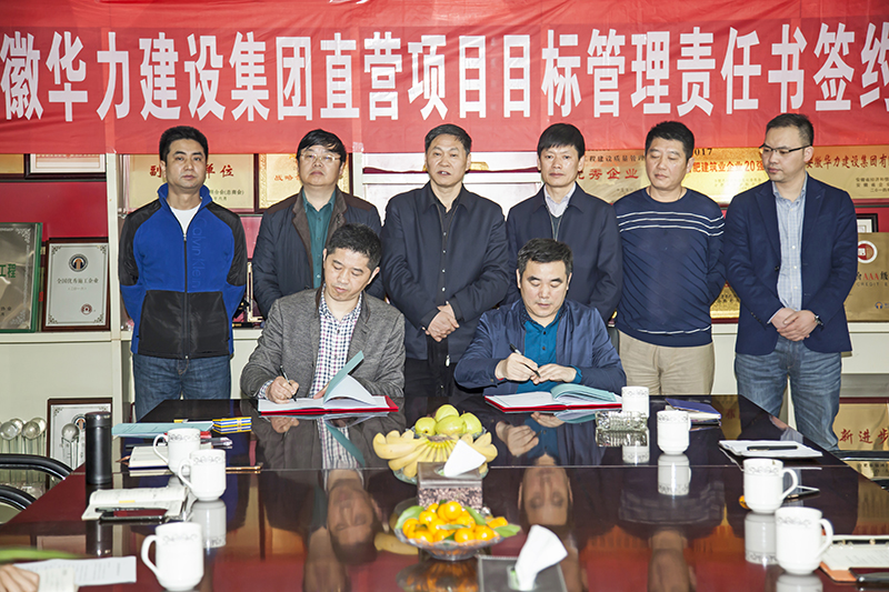 签约仪式上,华力建设集团董事长王坤分别与六安独山红军村安置房(二期)项目经理李多乐、怀远一中淮西校区项目经理董泽武签订了项目目标管理责任书。