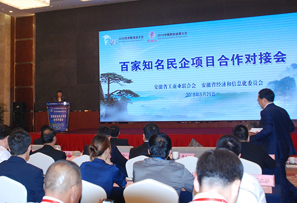 5月25日下午,作为2018世界制造业大会和2018中国国际徽商大会精彩看点之一百家知名民企项目合作对接会在肥举行中央统战部副部长、全国工商联党组书记、常务副主席徐乐江,安徽省委常委、宣传部长虞爱华分别致辞。安徽省副省长、省工商联主席王翠凤主持对接会。安徽省委统战部副部长、省工商联党组书记、常务副主席缪学刚,省工商联领导刘明平、施广勇、李俊波、司武、纪劲松等出席。