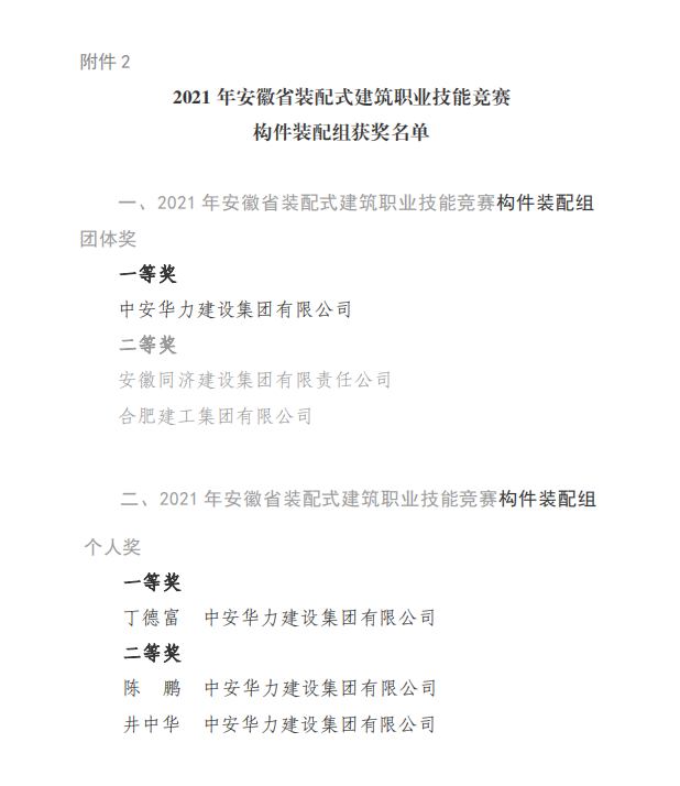 中安华力一直秉持“创新、协调、绿色、开放、共享”发展理念,大力发展装配式建筑,坚持以赛代训、以赛促训、以赛树典型为目标,助推企业打造专业的产业工人队伍。赛后将继续加强装配式人才培养及装配式建筑技术实践,弘扬新时代“徽匠精神”,并将作为安徽省优秀代表队参加在江苏省举办的“长三角区域装配式建筑职业技能竞赛”,争取在比赛中取得优异成绩。