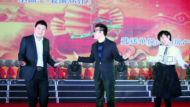 华鑫房产公司选送的小品《表演三十六计》,演员的表演惟妙惟肖,把晚会推向了 一个高潮。