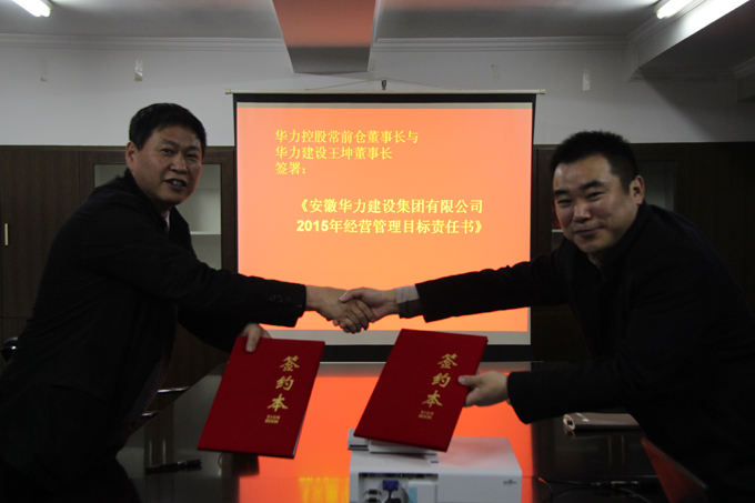 常前仓与王坤签订《安徽华力建设集团有限公司2015年经营管理目标责任书》