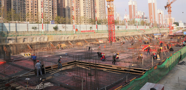 紧张忙碌的施工现场——目前二层地下室已经封顶