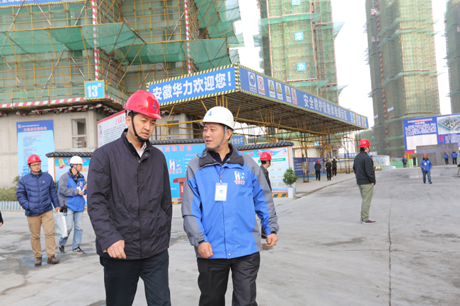 2015年12月2日,“全国住宅工程质量常见问题专项治理暨质量标准化观摩会”来到安徽华力建设集团有限公司承建的合肥滨湖新区菊园三标段施工现场。住建部质量安全司曾宪新副司长率来自全国31个省、自治区、直辖市和新疆生产建设兵团的工程质量主管部门、质量监督机构负责人及省住建厅、合肥市建委有关领导,以及本省省辖市建设工程质量管理部门负责人等100多位领导和嘉宾莅临现场检查指导,省住建厅副厅长曹剑、质量安全处长王晓魁、省质量安全总站站长刘超、合肥建委副主任陈传东、安徽华力建设集团有限公司董事长王坤等陪同观摩。