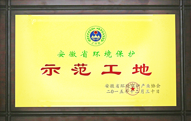 大富新领地项目部申报2015年度“安徽省环境保护示范工地”评比,经安徽省环保协会实际考核认定:该项目部认真落实国家节能减排方针和地方环保法规,节能减排和环保工作成效显著,符合环境保护示范工地要求。并颁发了奖牌和证书。