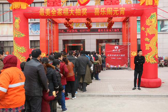 新年新气象、新春喜事多。2016年2月21日农历正月十四,状元府营销中心广场举行了喜乐闹元宵、全家福大抽奖活动。主要是状元府项目的购房业主及认可状元府项目且意向较强的客户,奖品设置为一等奖  Iphone6 plus  1名;二等奖  美的冰箱 2名;三等奖  美的微波炉3名,同时为每位到场登记的业主准备了元宵汤圆礼品。