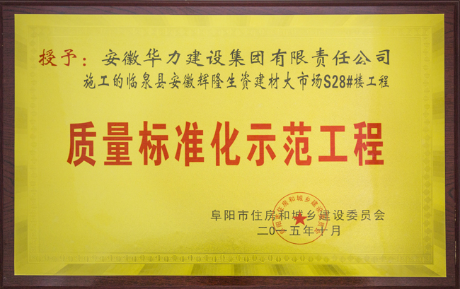 该项目2015年被评为“阜阳市质量标准化示范工程”,目前已经申报安徽省建设优质工程奖“黄山杯”奖。
