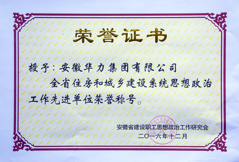 华力集团被评为“全省住房建设系统思想政治工作先进单位”