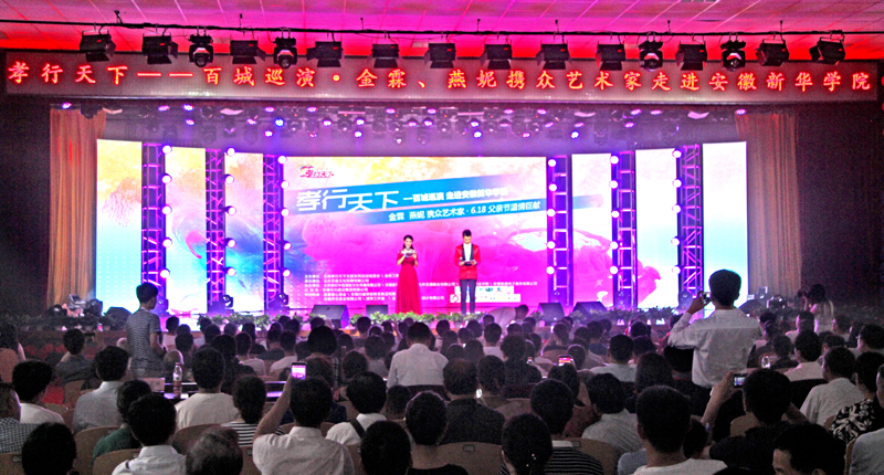 618父亲节,由全国老龄委主办、华力建设集团冠名的“孝行天下百城巡演”温情走进合肥,空政文工团国家一级演员、舒城女儿燕妮携众艺术家,邀请合肥全国孝老爱亲中国好人齐聚安徽新华学院,用爱和孝道诠释父爱如山,弘扬中华传统孝文化