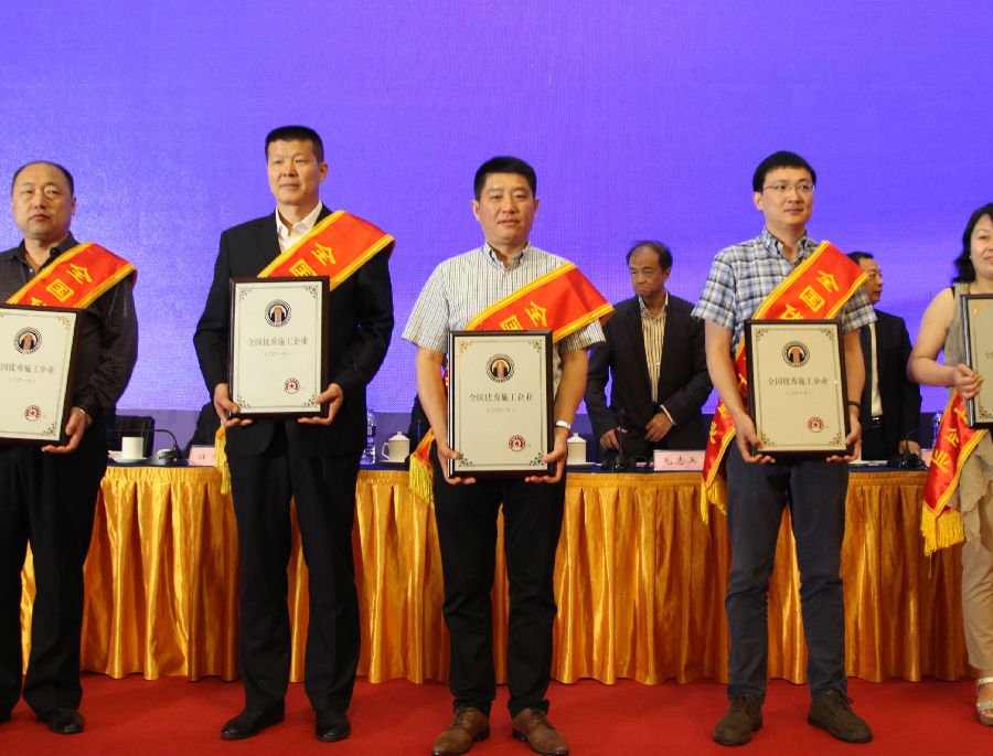 王亮总经理(中)接受2017年度“全国优秀施工企业”授牌