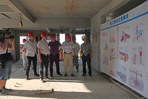 6月13日下午,滁州市安全生产主管部门及当地媒体一行以“安全生产江淮行”为契机,来到华力建设集团承建的“安徽省建筑安全生产标准化示范工地”——滁州徽商·公园壹号一期D组团项目现场,考察报道安全生产示范成果、经验。华力建设总经理王亮及项目负责人在现场接待了专访团一行。