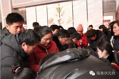 2015年元月31日下午15:08分,临泉学区住宅1号作品,状元府在万人瞩目总迎来了首期开盘。自活动当日下午13点起,前来状元府营销中心看房的私家车已将项目门前的解放路停车场位塞的满满当当,由于现场购房客户较多,特地请来部分治安人员现场维持秩序。
