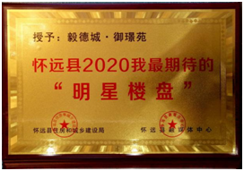 5月13日,由怀远县住房和城乡建设局、怀远县融媒体中心联合举办的怀远县2020我最期待的“明星楼盘”颁奖典礼隆重举行。“明星楼盘”公益评选,经现场评审、网络投票、综合评价等环节,由华力地产集团开发的毅德城·御璟苑项目凭借优异市场表现和品牌影响力,荣获“怀远县2020我最期待的‘明星楼盘’和“怀远县2020我最期待的‘明星楼盘’人居环境奖”两项殊荣;同时,另一府系力作——华力·紫荆府获得“网络人气奖”和“明星楼盘奖”殊荣。