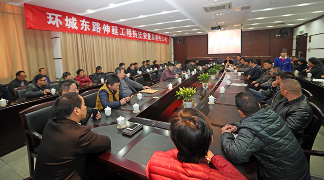 乐清市市政园林局局长、市政工程建设办公室党组书记王东(中)讲话,市政工程建设办公室主任、党组副书记付利铭(右)出席签约,市政工程建设办公室副主任、乐清市环城东路延伸工程指挥部总指挥张贤胜(左)主持签约仪式。