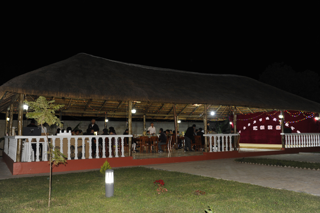 赞比亚当地时间4月10日晚,中安华力赞比亚有限公司总部基地内张灯结彩,欢声笑语,华力控股副董事长、安徽华力海外发展有限公司董事长刘进在基地内的草棚举办答谢晚宴与汇报演出,宴请出席合作共赢战略研讨会的华力控股董事长常前仓及与会人员。