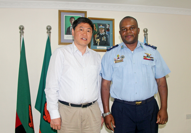 2015年4月21日,赞比亚国家空军总司令齐米兹将军,在空军基地亲切接见了到赞进行商务活动的华力控股公司董事长常前仓、华力海外发展公司董事长刘进一行。