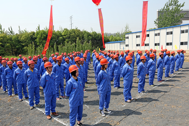 参加开工典礼的华力建设工人