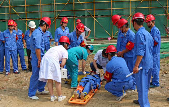 演练开始,按照应急救援预案的流程,有条不紊的展开。现场模拟塔吊倒塌后,出现人员受伤,疏散组、抢救组、警戒组、后勤组、通联组、宣传组各司其职。上报案情、现场抢救、120快速赶到,及时组成事故调查。按照方案全面演练,取得了较好的效果。给参演及观摩人员都上了一堂很好的安全生产课。
