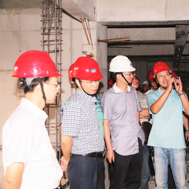 9月10日,省建设工程质量安全监督总站站长刘超、工程监督科科长季群等一行,在合肥市质量安全站总工程师孙巍的陪同下,就工程质量标准化建设、住宅工程质量通病防治等课题,并为今年“全国工程质量标准化会议”在安徽召开做好准备工作,来到华力施工的菊园项目部调研,华力建设总经理王亮、总工程师吴银国等陪同调研。