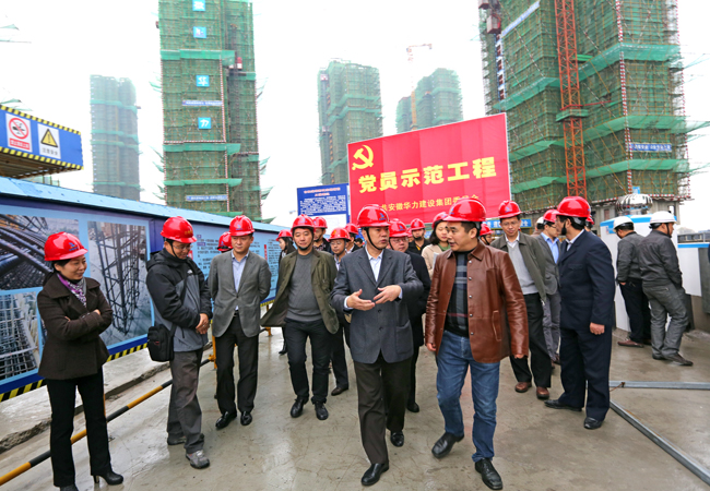 2015年11月18日下午,国务院质量考核组副组长国家卫生计生委食品司司长刘金峰及成员国家质检总局质量司处长李艳,国家卫生计生委食品司处长徐娇,国家质检总局法规司主任科员庄磊,中国防伪行业协会秘书长殷荣伍,中国标准化杂志社执行主编孙加顺,国家质检总局质量管理司主任科员邱丽君一行,在省政府领导省质量工作领导小组副组长张武扬,省质监局领导朱琳局长、高宗宏副局长,合肥市市政府领导常委、副市长陈晓波,副秘书长汪维明,市质监局夏显金局长、张秀川副局长、江家如处长,市城乡建委副主任陈传东、质安处沈国宝副处长、质安站孙巍总工等领导的陪同下,来到华力建设施工的滨湖菊园三标段施工现场检查考核,华力建设董事长王坤、总经理王亮、总工程师吴银国等陪同检查。