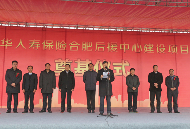 12月23日上午,新华人寿保险合肥后援中心项目开工仪式在滨湖新区举行。市长张庆军出席仪式并宣布项目开工。安徽保监局局长张辉烨、新华人寿保险股份有限公司总裁万峰分别致辞。市委常委、秘书长韦弋,市政府秘书长柴修发及包河区区委书记、滨湖新区建设管理委员会主任宁波、安徽省建设银行杨学军副行长及包河区政府、市城乡建委市、市国土局、市规划局、市金融办的主要负责同志出席仪式。业主方新华人寿总裁万峰、行政管理部杨怀鹏总经理、股权与不动产管理部池运强,新华人寿安徽分公司罗文总经理参加了仪式,设计单位中国建筑设计院马海副总经理,施工单位华力建设总经理王亮,带领50名华力员工及十余台工程机械列队参加了仪式。